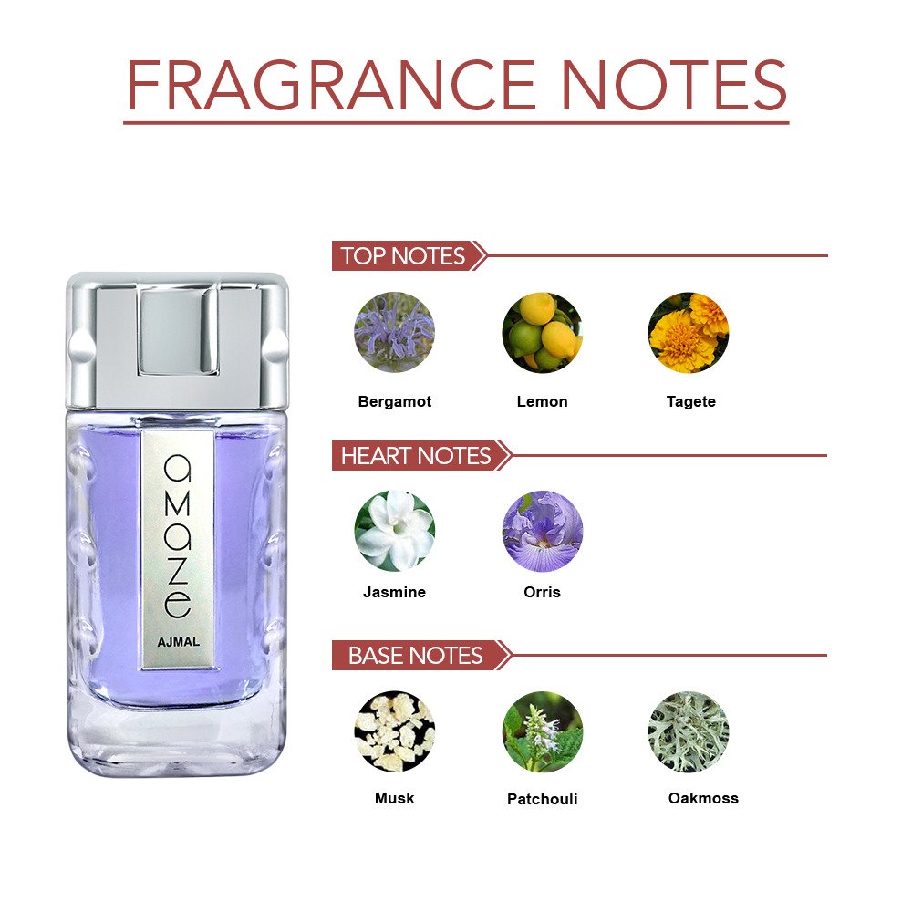Keep the unpredictable persona with a charming demeanour, and let the endearing creation laced with a leathery, woody and musky allure, enhance your stunning style. Choose AMAZE, for an enchanting love affair with nature.