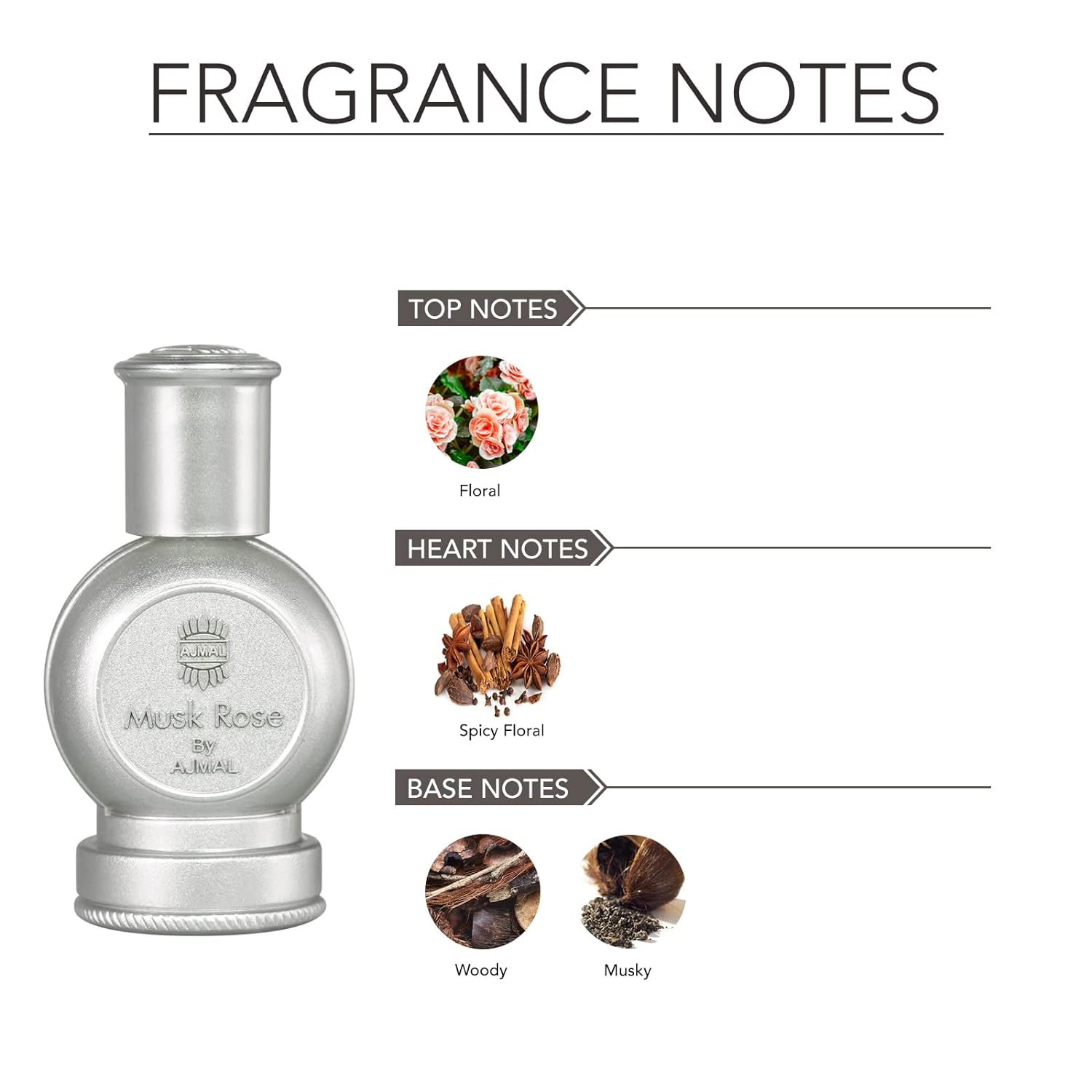 Ajmal Set Of 2 Concentrated Perfumes - Musk Rose 12ml 0.4 Fl.oz. & Khofooq 18ml 0.6 Fl.oz. Perfume Oil Woody Oudhy Alcohol-free Attar | For Unisex