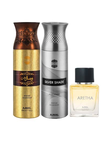 Ajmal Wisal Dhahab Deodorant + Men Silver Shade Deodorant 200ml 6.7 Fl.oz. Each X2 + Aretha Eau De Parfum 50ml 1.6 Fl.oz. | For Unisex