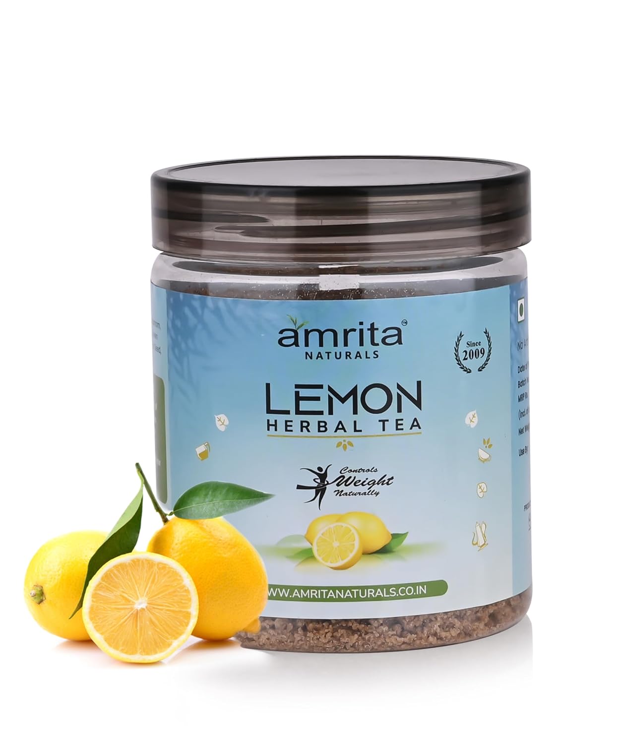 Amrita Naturals Lemon Herbal Tea - 250gm, 8.8 Ounce | Controls Weight Naturally, Boosts Immune System - Caffeine Free, Rich In Antioxidants