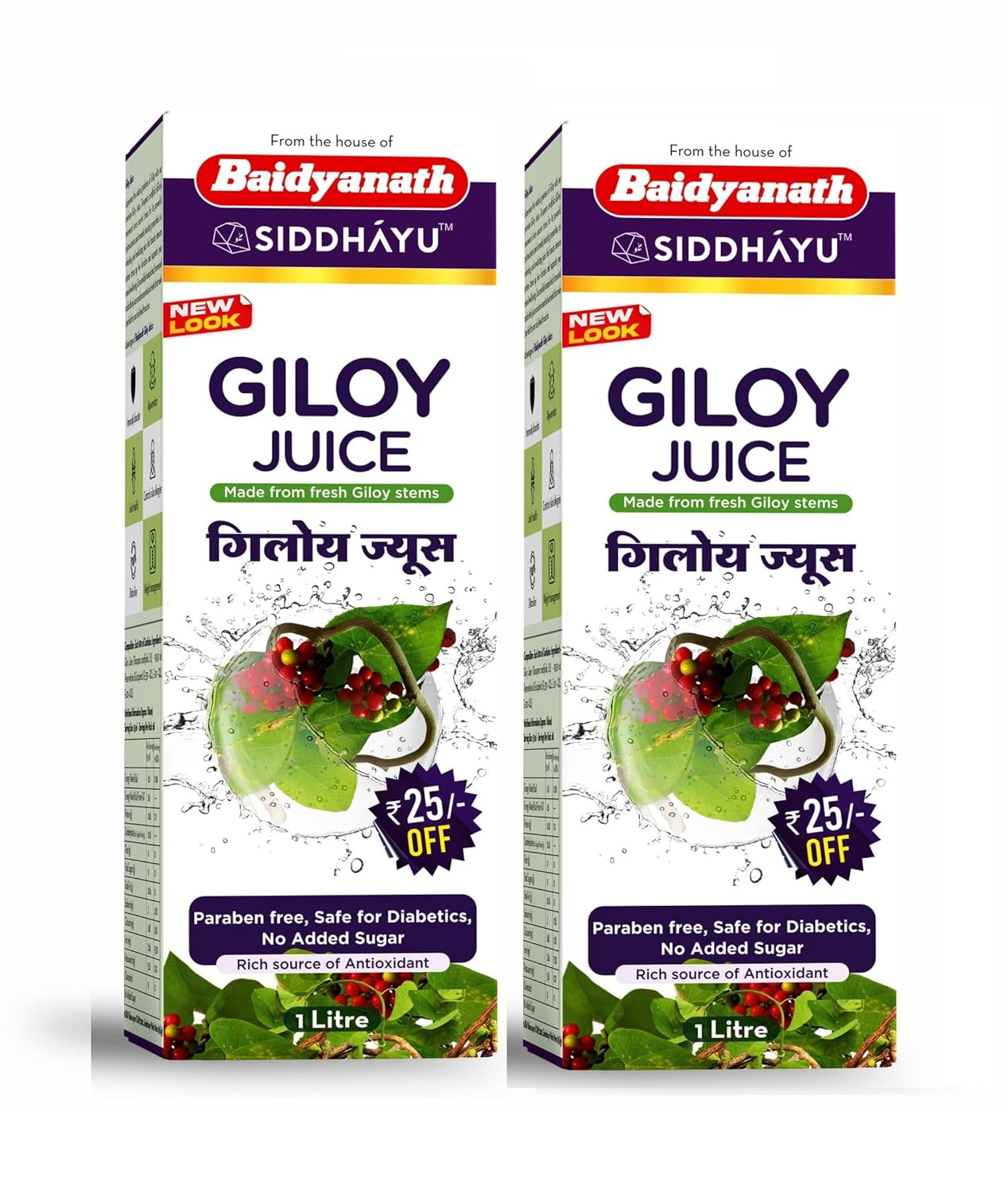 Baidyanath Asli Ayurved Giloy Juice Natural Immunity Booster, Help To Overcome Weakness After Long Illness | 1 Litre 2.2lbs Each Pack Of 2