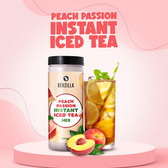 Bevzilla Peach Passion Instant Iced Tea Mix - 400gm, 14.1 Ounce | Quick Ready In 30 Seconds - Perfect Refreshing Summer Drink | Easy To Carry Anywhere - Low Caffeine