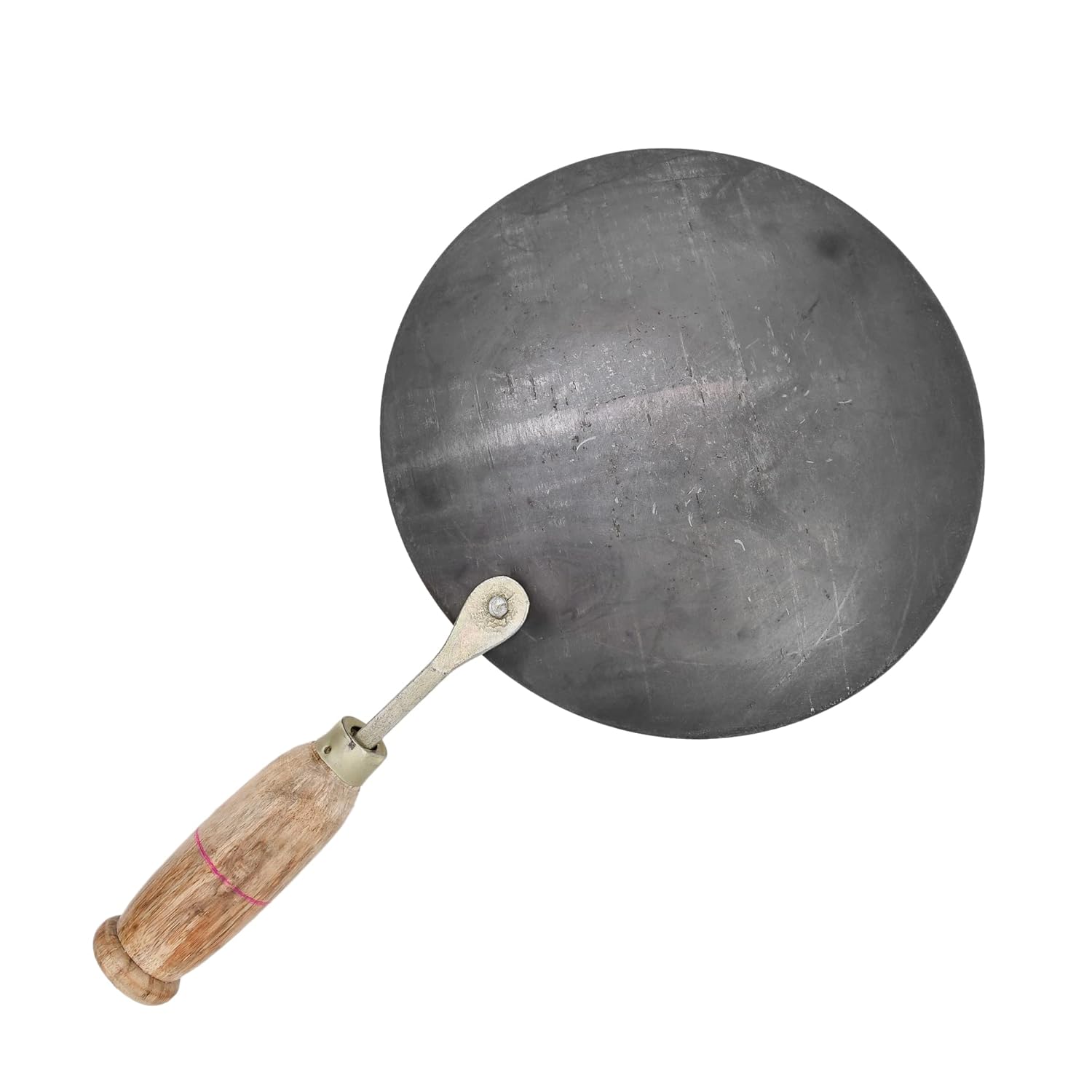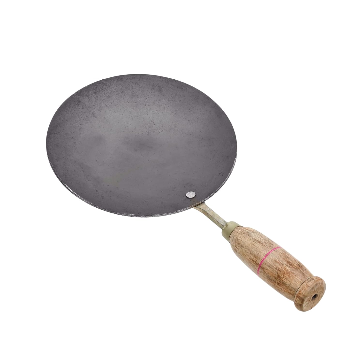 Black Iron Tawa With Wooden Handle For Roti, Chapati, Paratha 10.5 Inches