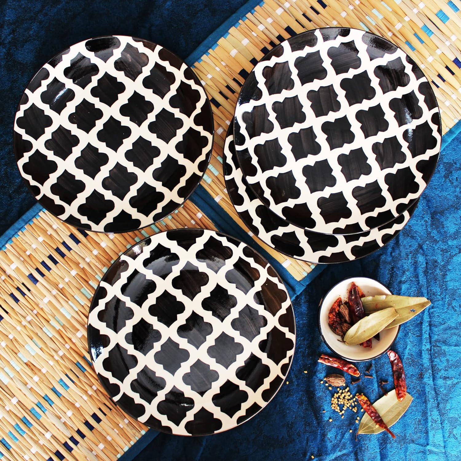 Black Moroccan Ceramic Dinner Plates Set Of 4 | Hand Painted Full Ceramic Plates For Dinner | 10 Inches, 4 Pieces, Microwave Safe & Dishwasher Safe