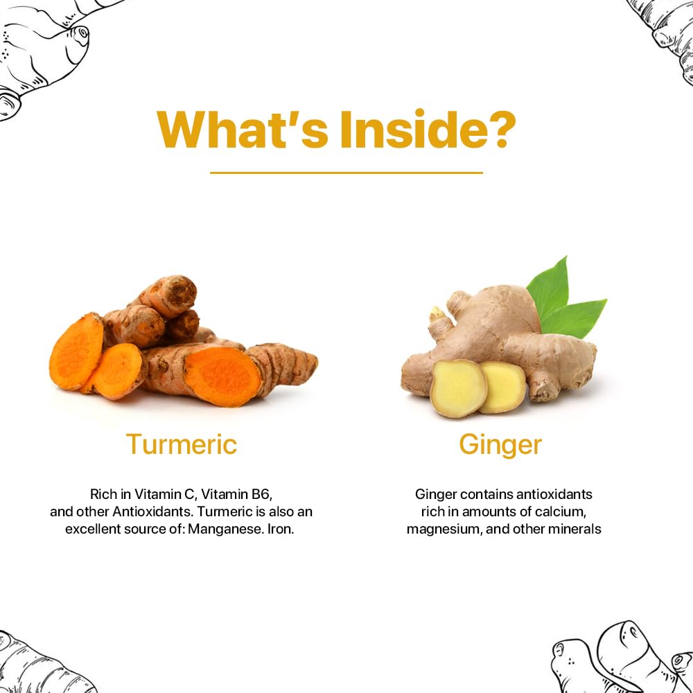 AYURVEDIC BLEND: Enjoy the traditional Ayurvedic combination of ginger and turmeric, known for their potent health benefits and synergistic properties.