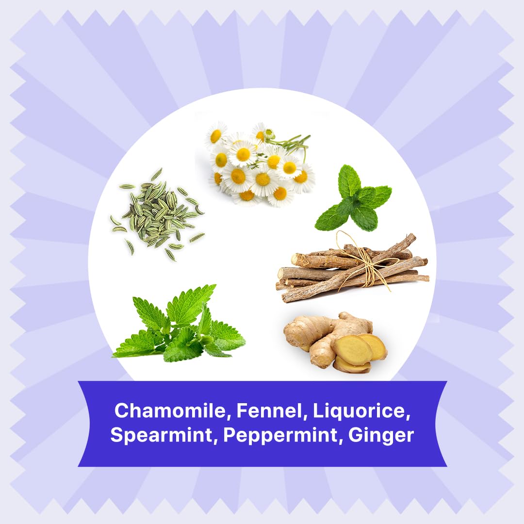 MENSTRUAL SUPPORT: A specially formulated combination of chamomile, fennel, liquorice, and spearmint designed to support menstrual health and regulate the cycle.