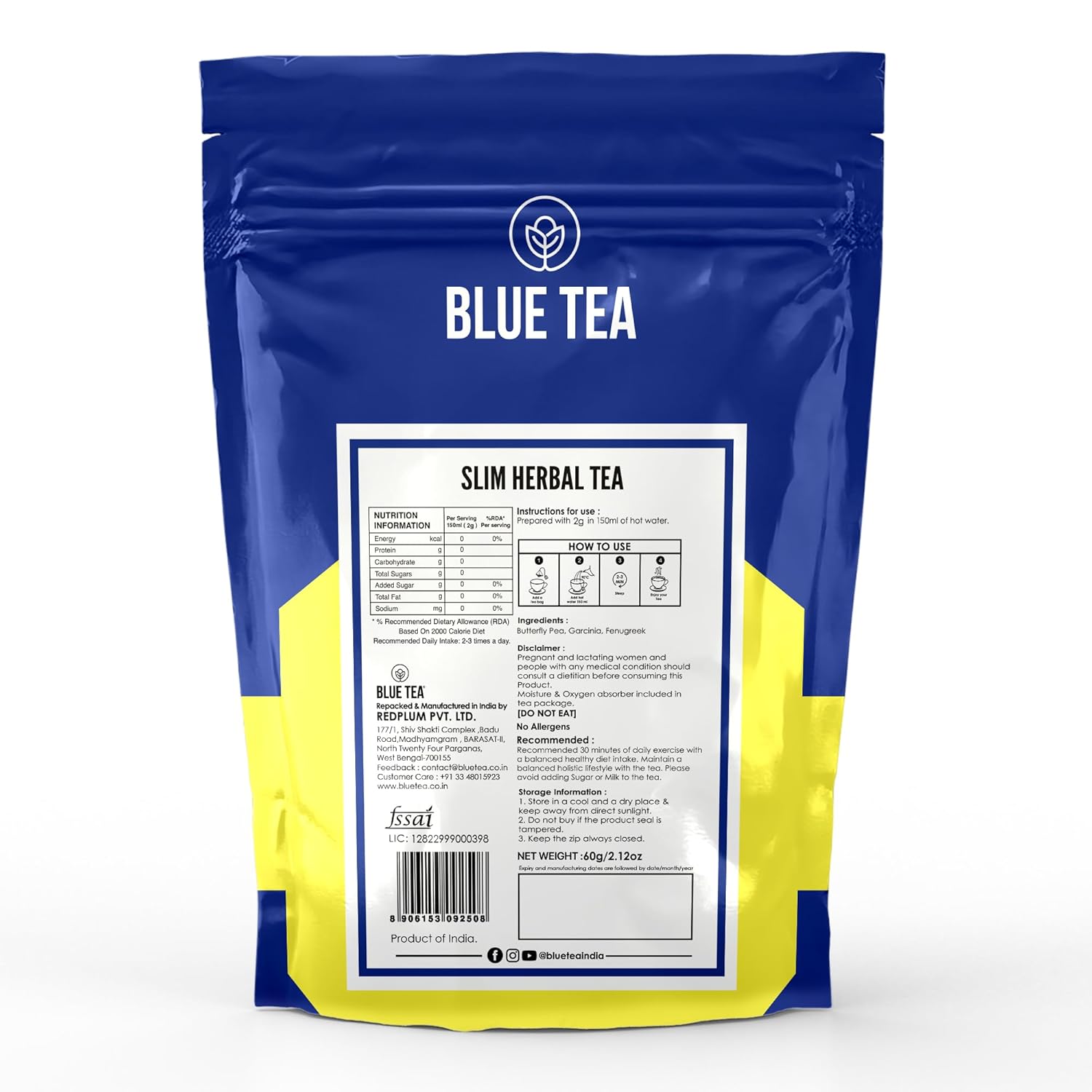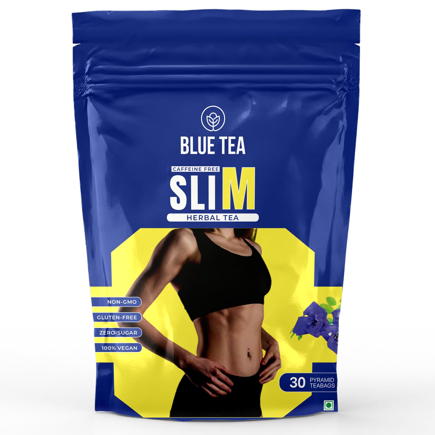 Blue Tea Caffeine Free Slim Herbal Tea - 30 Pyramid Tea Bags In Zip Lock Pack | Helps Maintain A Flat Tummy - Gluten Free, Non-GMO, Zero Sugar, 100% Vegan