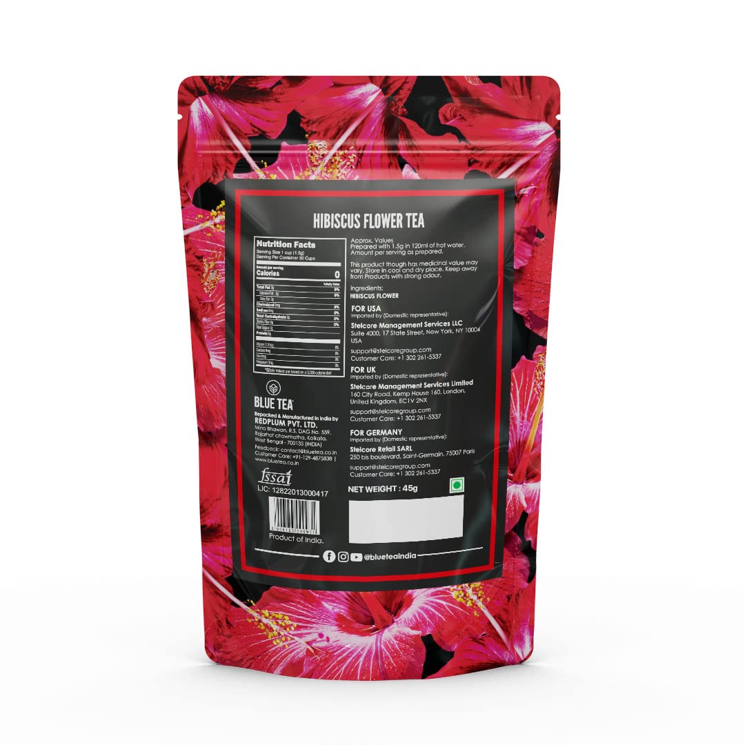 Blue Tea Hibiscus Herbal Tea - 30 Tea Bags | Enhances Skin Glow, Calms Skin Irritation - Gluten Free, Caffeine Free, Non-GMO | Zipper Packaging