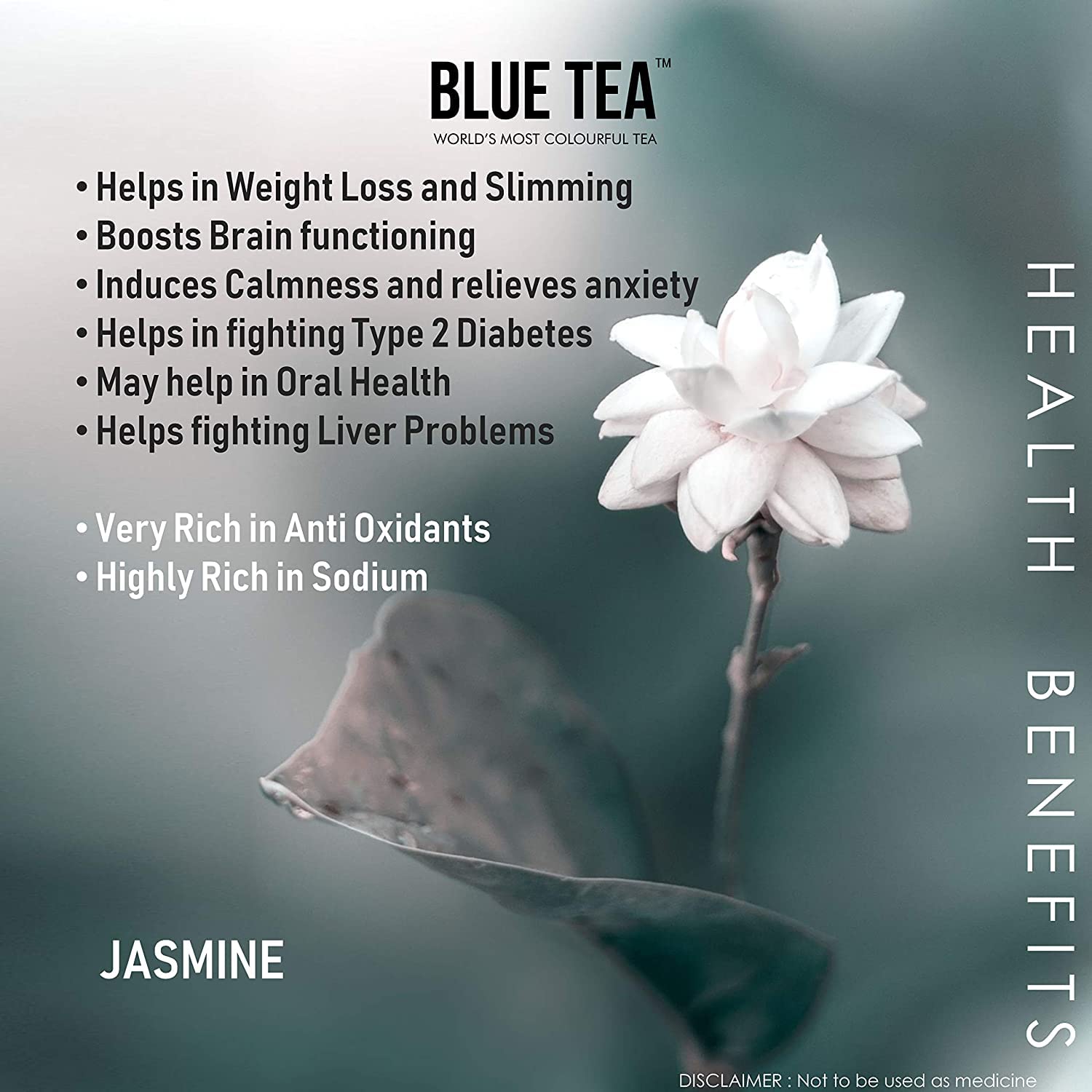 Blue Tea Organic Jasmine Flower Herbal Tea - 30gm Reusable Pet Jar, 1.05 Ounce, 30 Cups | Non-Bitter, Flower Based Super Antioxidant Tea - For Slimming Body & Stress Relief