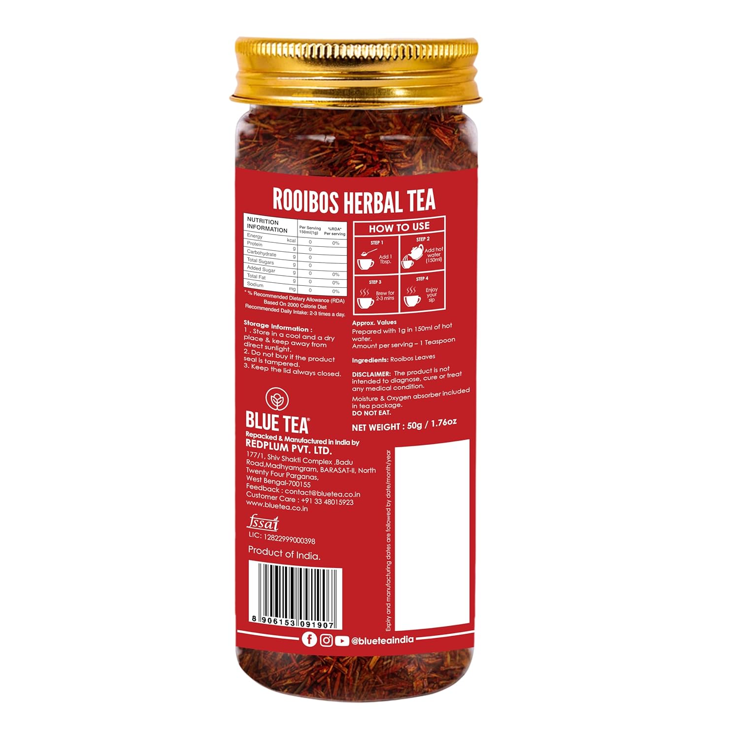 Blue Tea Rooibos Herbal Tea - 50gm Pet Jar, 1.7 Ounce, 50 Cups | Flower Based Antioxidant Rich Tea - Detox Tea, Gluten Free, Non-GMO | No Added Colors, No Preservatives