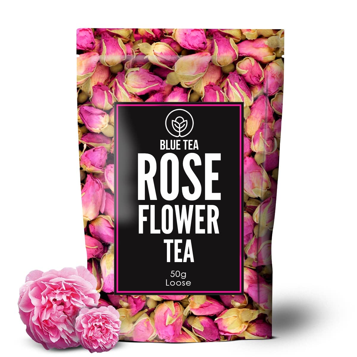Blue Tea Rose Flower Herbal Tea - 50gm, 1.7 Ounce, 50 Cups | Flower Based, Caffeine Free, Non-GMO - Beautiful Hair & Skin, Rich Vitamin-C | Zipper Packaging