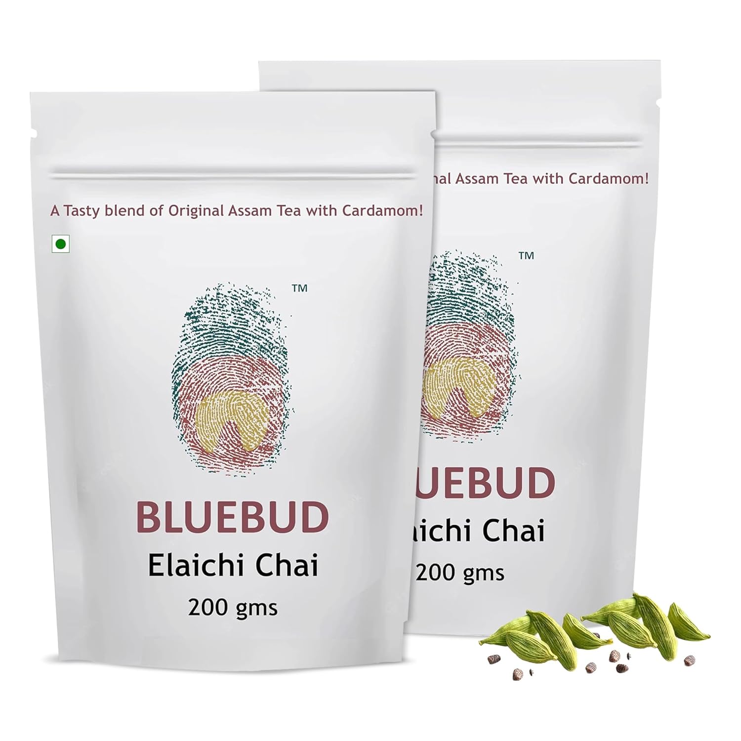 Bluebud Elaichi Chai Patti Pack Of 2 X 200gm, 7.05 Ounce Each - 200 Cups | Premium Assam CTC Tea With 100% Natural Spices - Cardamom Tea Hand Blended Teas | Homemade Recipe