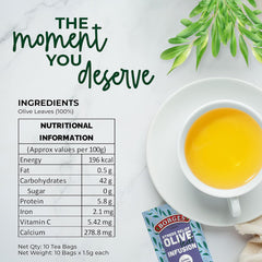 Place the bag in a cup and pour hot water over the bag. Let it brew for 4-5 mins and remove the bag. Enjoy your cup of Olive leaf infusion.