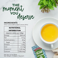 Borges Stress Relief Olive Leaf Infusion Tea - 10 Bags In Sealed Envelope | 2X Antioxidants Than Green Tea - With Goodness Of Basil | Caffeine Free, No Added Flavor