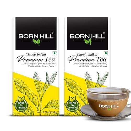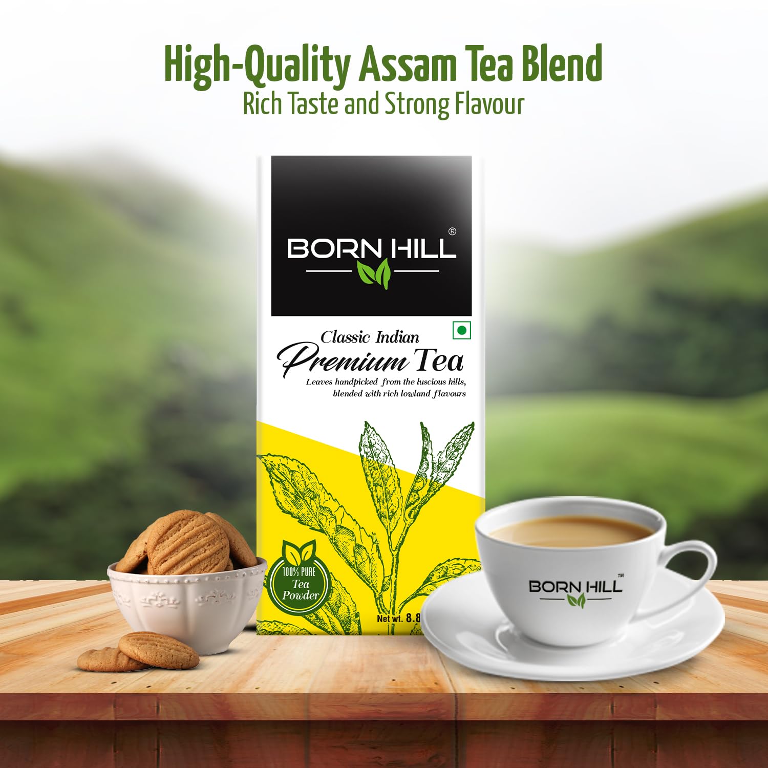 Born Hill Classic Indian Premium Assam Tea Powder - Pack Of 2 X 250gm, 8.8 Ounce Each | 100% Natural, Fresh Blend With No Preservatives Or Colors - Authentic Indian Flavor, Resealable Pack