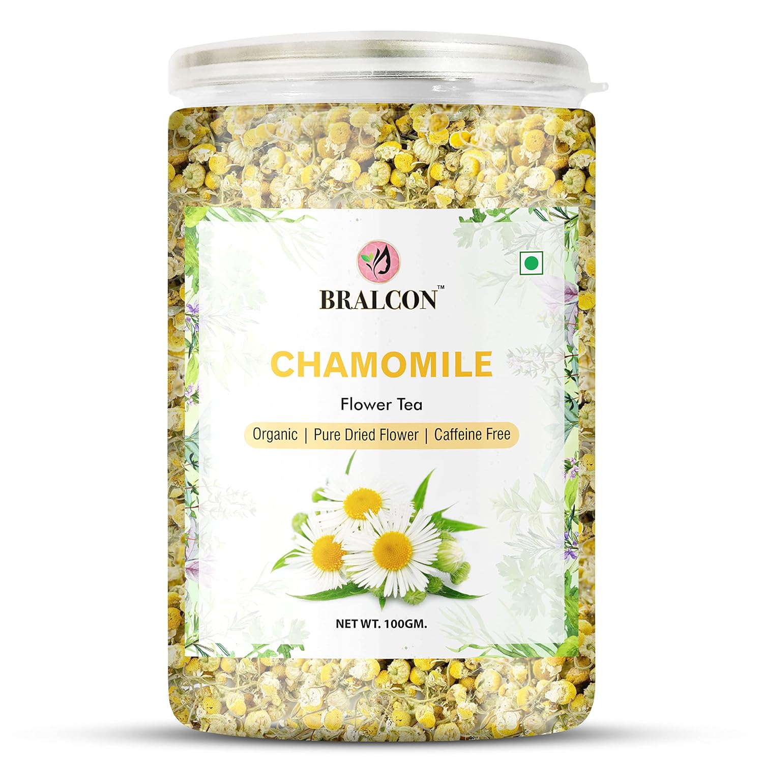 Bralcon Organic Chamomile Flower Tea - 100gm, 3.5 Ounce | Improves Sleep, Reduce Anxiety - Pure Dried Flower Detox Tea | Caffeine Free