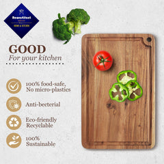 Brown Wood Cutting Boards For Kitchen | Wooden Chopping Board - Serving Platter - Rolling Board- Bread Board With Juice Groove For Vegetables, Fruits & Cheese