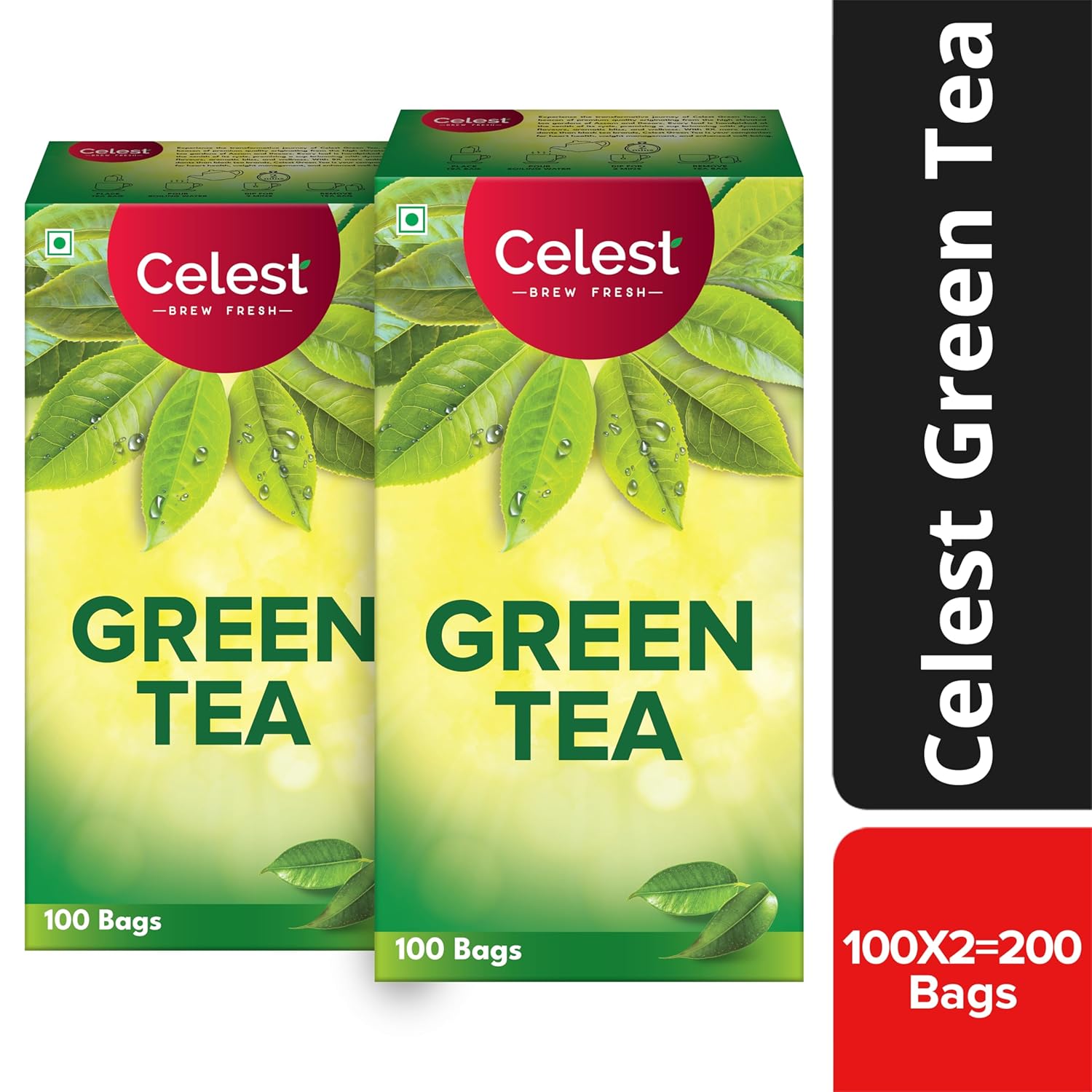 Celest Green Tea Bags - Pack Of 2 X 100 Enveloped Tea Bags | Helps Boost Metabolism, Zero Calories, Manage Waistline - Green Tea For Weight Loss
