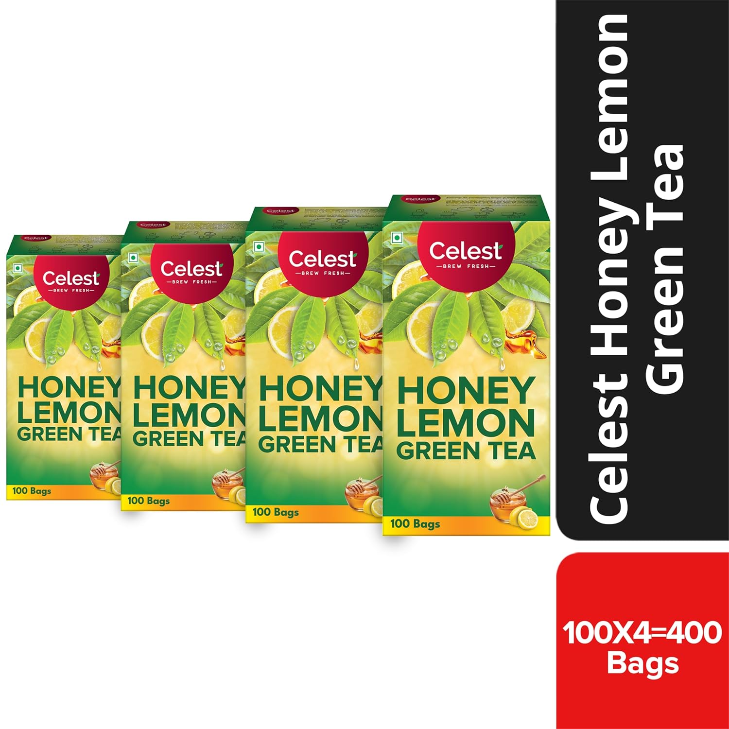 Celest Honey Lemon Green Tea - Pack Of 4 X 100 Enveloped Tea Bags | Helps Boost Metabolism, Zero Calories, Manage Waistline - Green Tea For Weight Loss