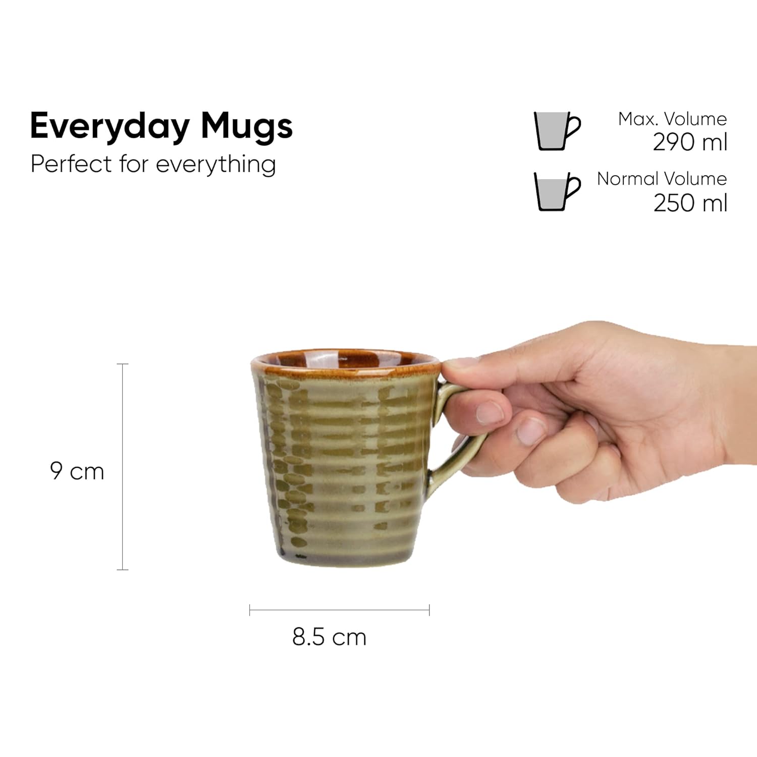 Ceramic Artisanal Coffee Cup Set Of 6 - 290ml Each, Mehndi Green | Medium Cup With Glossy Finish | Stoneware Coffee Cup Set - Ceramic Everyday Cup | Microwave Safe & Dishwasher Safe