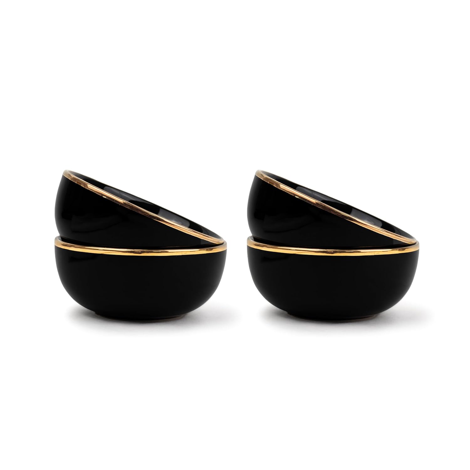 Ceramic Bowl Set Of 4 Pieces For Snacks - 330ml Each, Black Gold | Maggie Bowl, Noodle Bowl With Glossy Finish | Premium Stoneware | Microwave Safe & Dishwasher Safe
