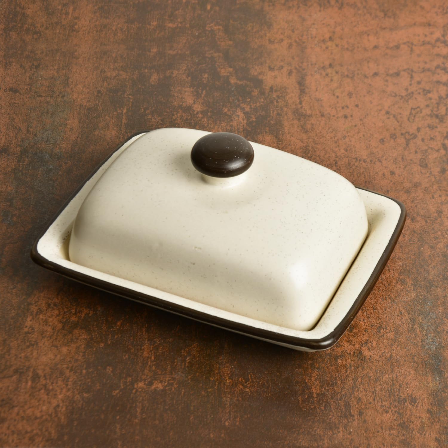 Ceramic Butter Dish With Lid - Off White, Height: 8 Cm | Butter Pot | Microwave & Dishwasher Safe Butter Container For 500 Gm