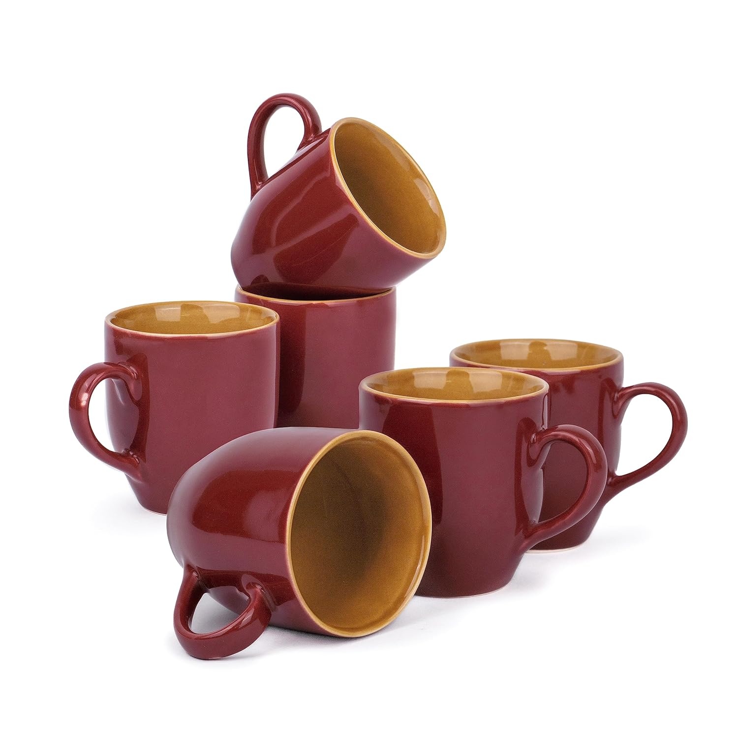 Ceramic Coffee Mug Set Of 6 - 300ml Each, Burgundy | Medium Mug With Glossy Finish | Stoneware Coffee Cup Set | Ceramic Cup | Microwave Safe & Dishwasher Safe