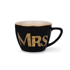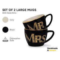 Ceramic Couple Mugs Set Of 2 - Black, 400ml Each | Mr & Mrs Coffee Mug With Glossy Finish | Large Cup For Coffee - Cappuccino Cup | Premium Stoneware Coffee Cup | Microwave Safe, Dishwasher Safe