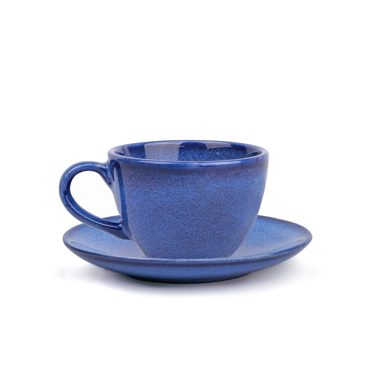 Ceramic Cup & Saucer Set Of 6 - Blue Reactive Glaze, 200ml Each Cup | Cup Saucer Set | 6 Cups + 6 Saucers | Tea Set With Glossy Finish | Ceramic Tea Cup & Saucer Set | Microwave & Dishwasher Safe