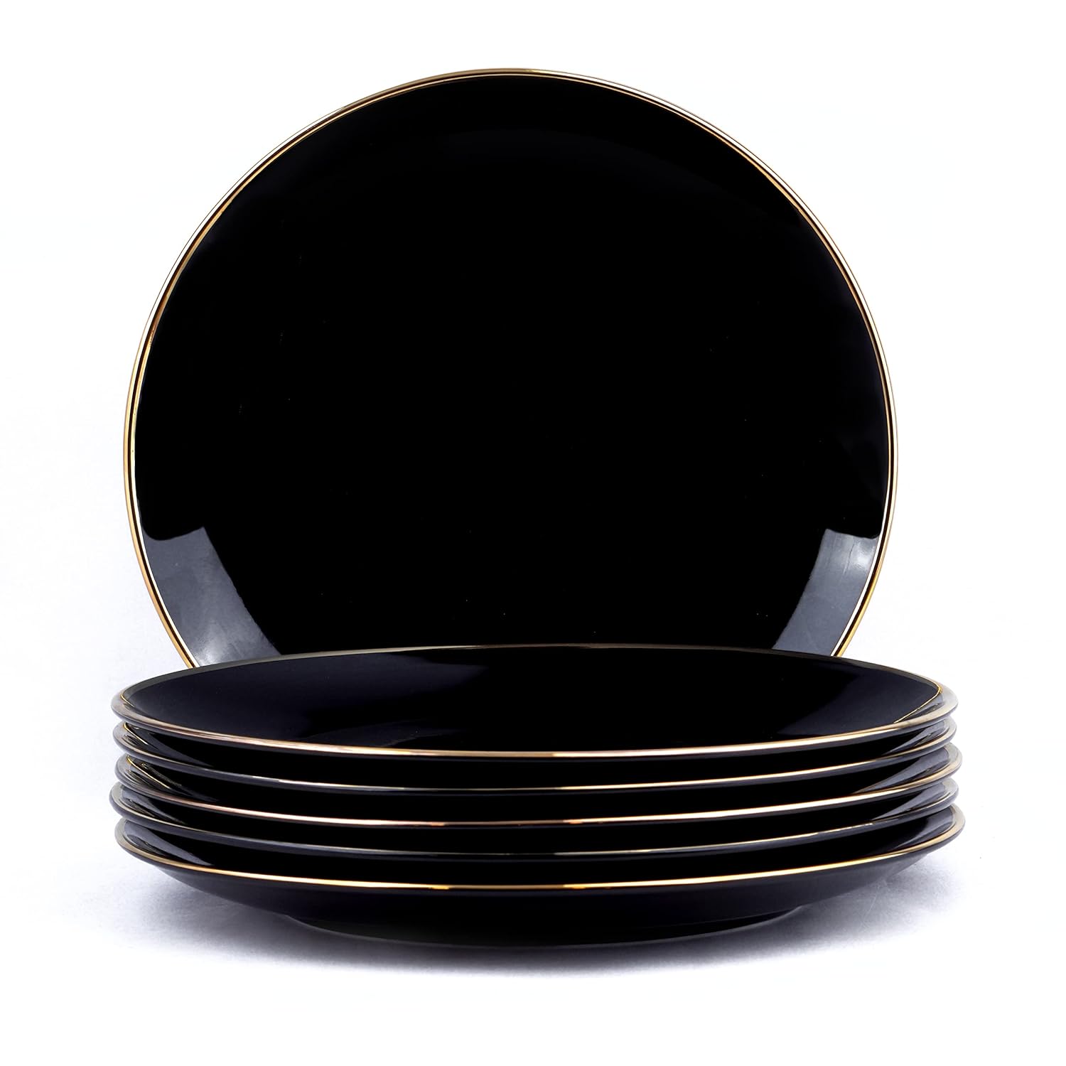 Ceramic Dinner Plates Set Of 6 Pieces - Black Gold, Gold Line Series | Ceramic Plates Set With Glossy Finish | Dinner Plates Ceramic | Set Of 6 Plates For Dinner