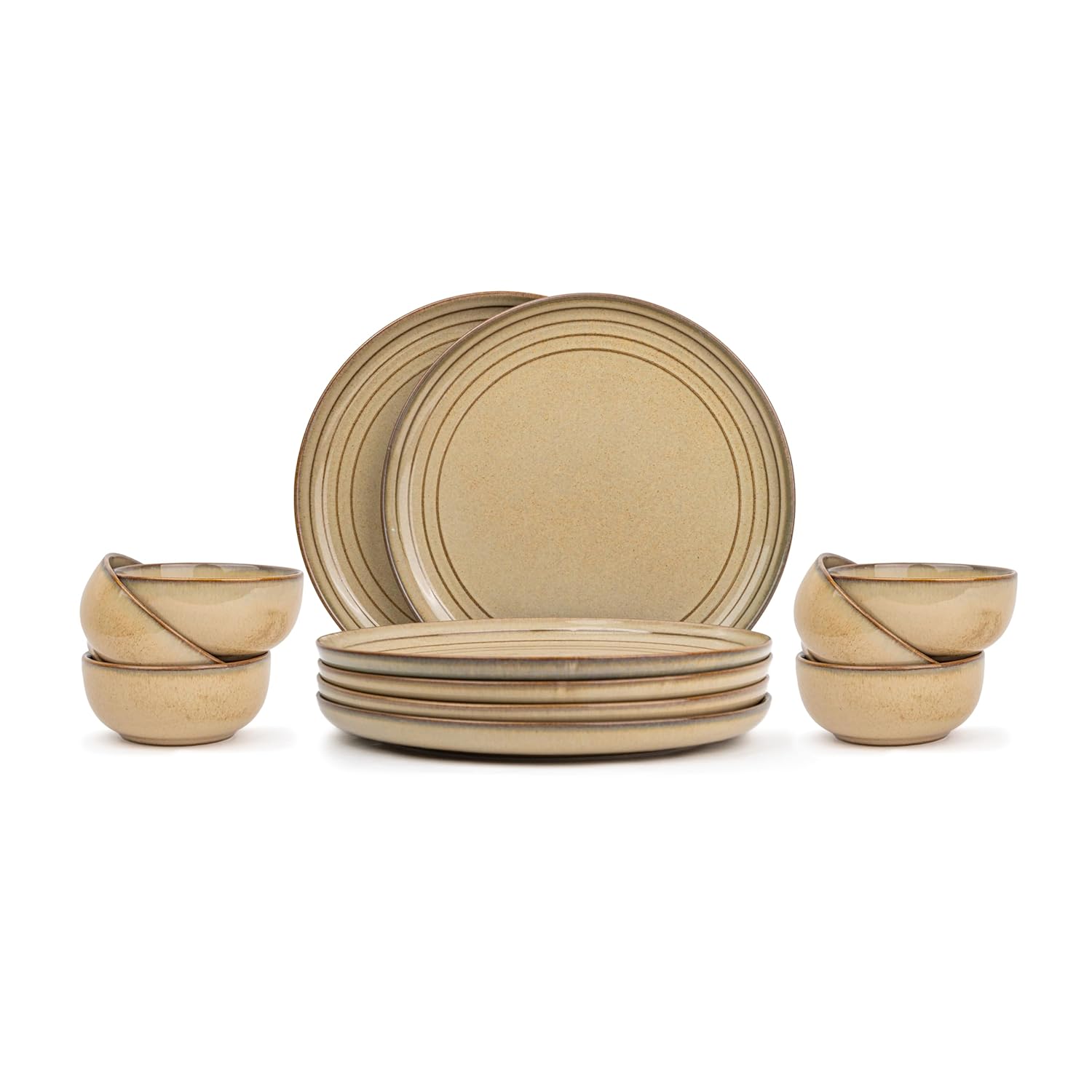 Ceramic Dinner Set Of 12 Pcs, Beige Reactive | Crockery Set For Dining Table | Dining Sets Crockery Items | Glossy Finish | Premium Stoneware | 6 Dinner Plates+ 6 Veg Bowls, 180ml Each