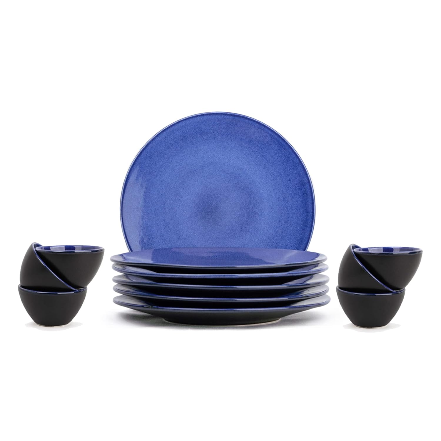 Ceramic Dinner Set Of 12 Pcs, Blue Reactive | Crockery Set For Dining Table | Dining Sets Crockery Items | Glossy Finish | 6 Dinner Plates+ 6 Veg Bowls, 220ml Each