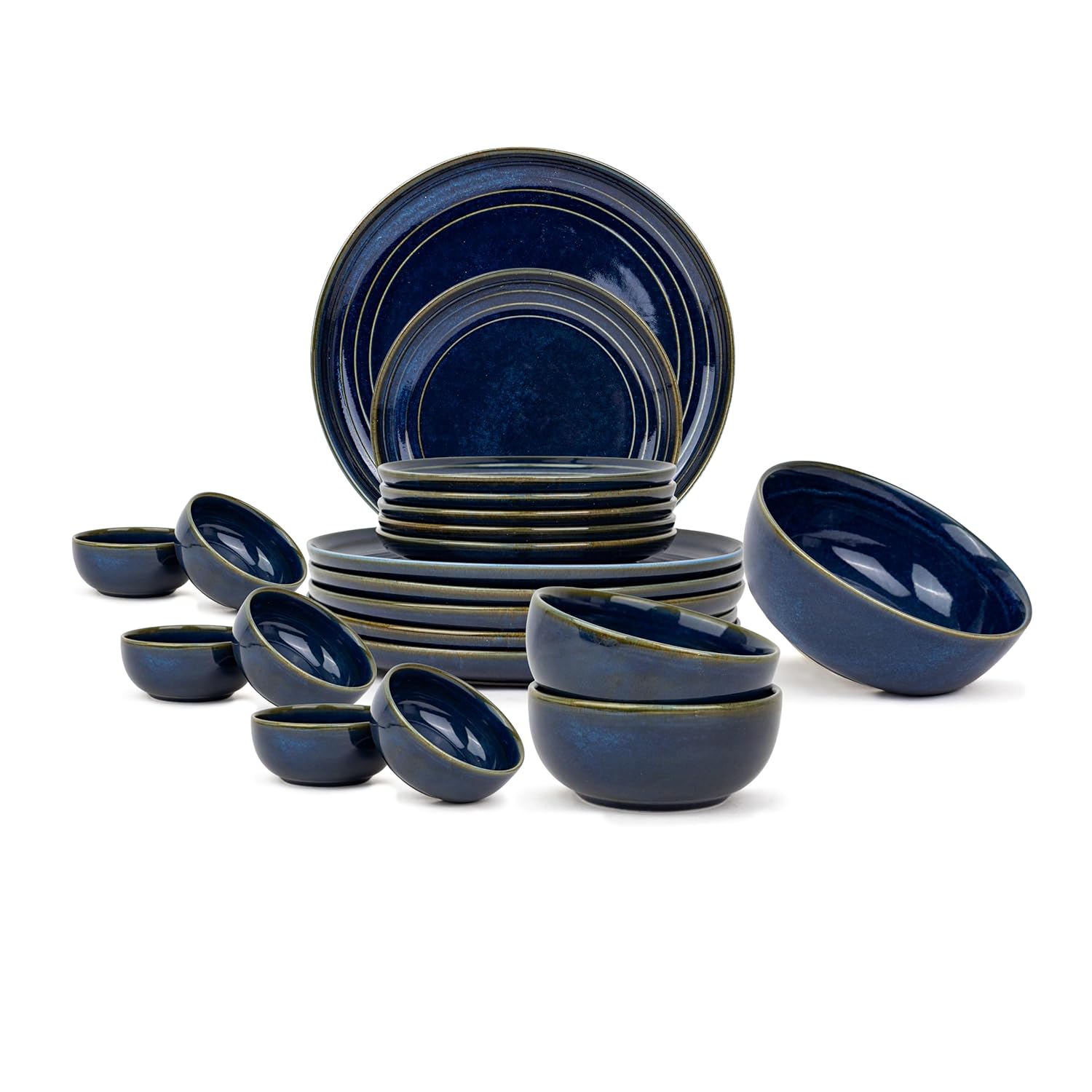 Ceramic Dinner Set Of 21 Pcs, Blue Green | Crockery Set, Dining Sets Crockery Items | 6 Dinner Plates+ 6 Quarter Plates+ 6 Veg Bowls, 180ml Each+ 2 Medium Bowls, 1000ml Each+ 1 Large Bowl, 1500ml