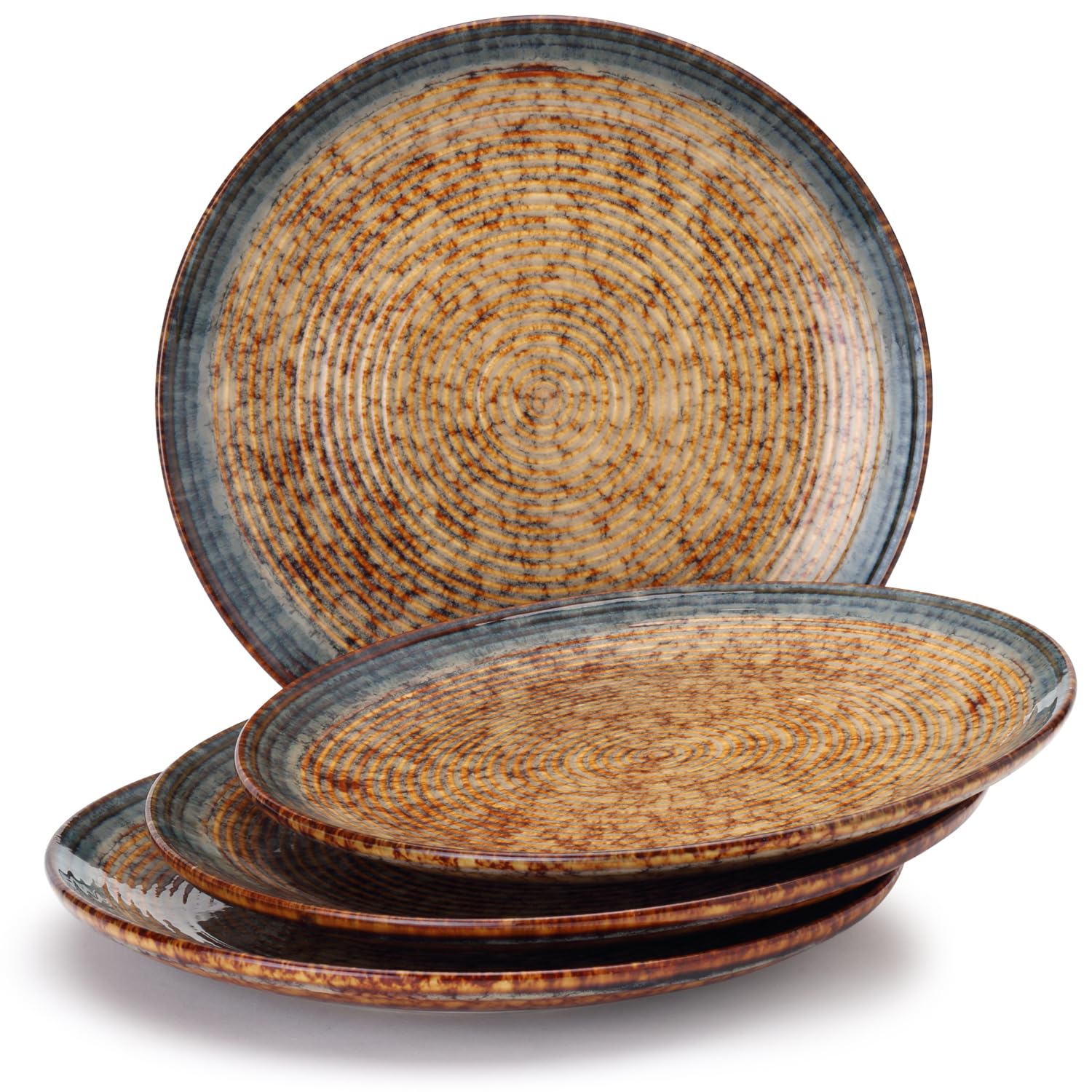 Ceramic Hand Glazed Stoneware Large Dinner Plates Set Of 4 - 10.6 Inch, Peanut Brown | Microwave Safe & Dishwasher Safe - Handcrafted Dinner Plates