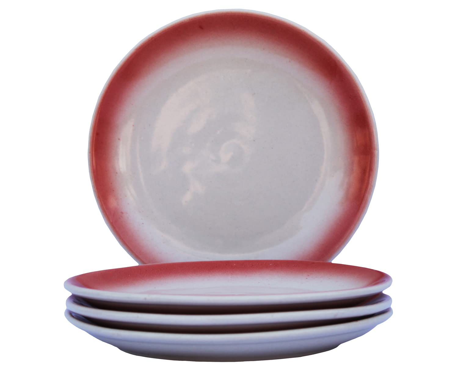 Ceramic Handcrafted Serving Handmade Small Plates Set Of 4 - 7.4 Inch, Red & Off White | Hand Painted | Stoneware - Dinnerware | Scratch Resistant, Microwave & Dishwasher Safe