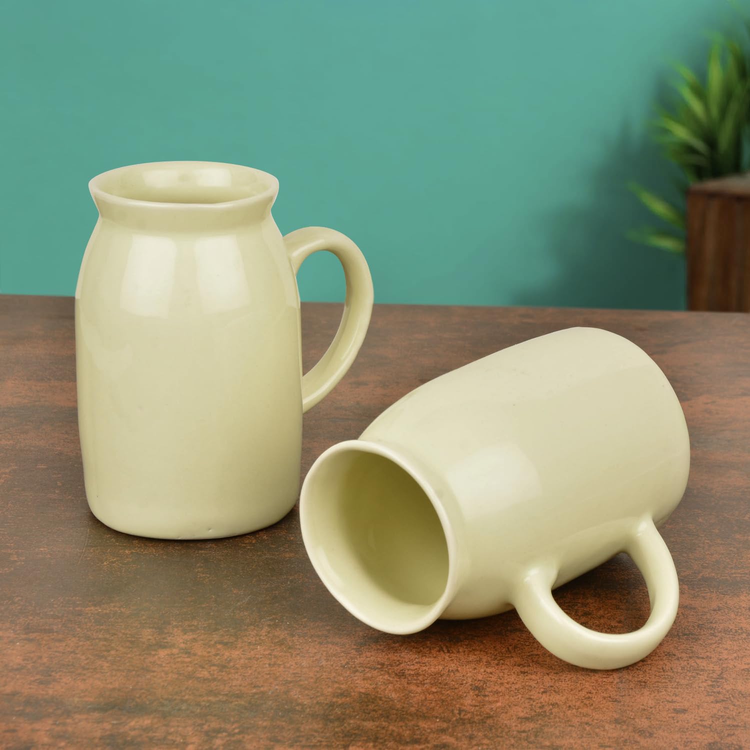 Ceramic Mason Jar Mugs Set Of 2 - 500ml, Yellow | Cold Coffee Mugs | Smoothie Mugs | Bottle Mugs
