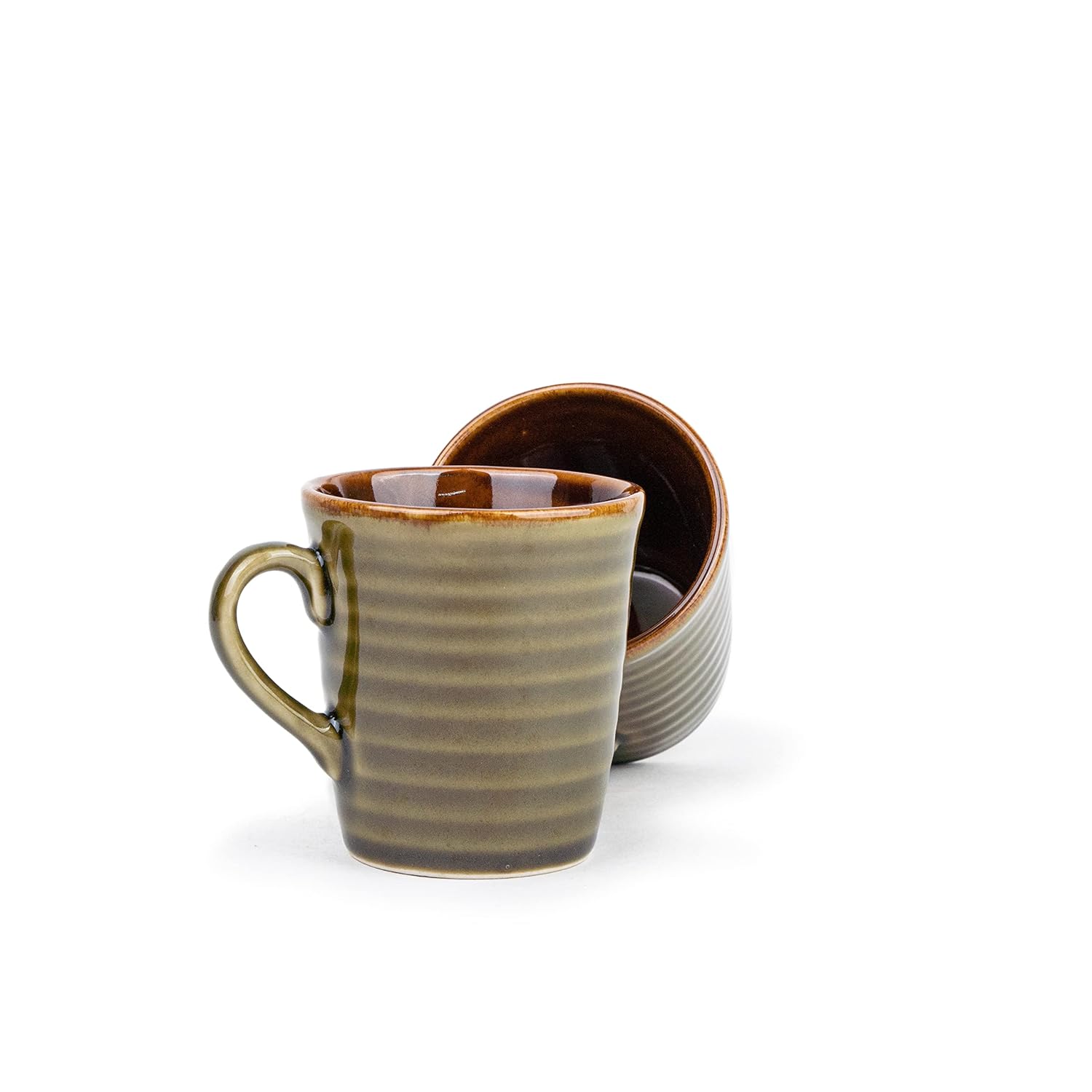 Ceramic Organic Coffee Cup Set Of 2 - 290ml Each, Mehndi Green | Medium Cup With Glossy Finish | Stoneware Coffee Cup Set - Ceramic Cup | Microwave Safe & Dishwasher Safe