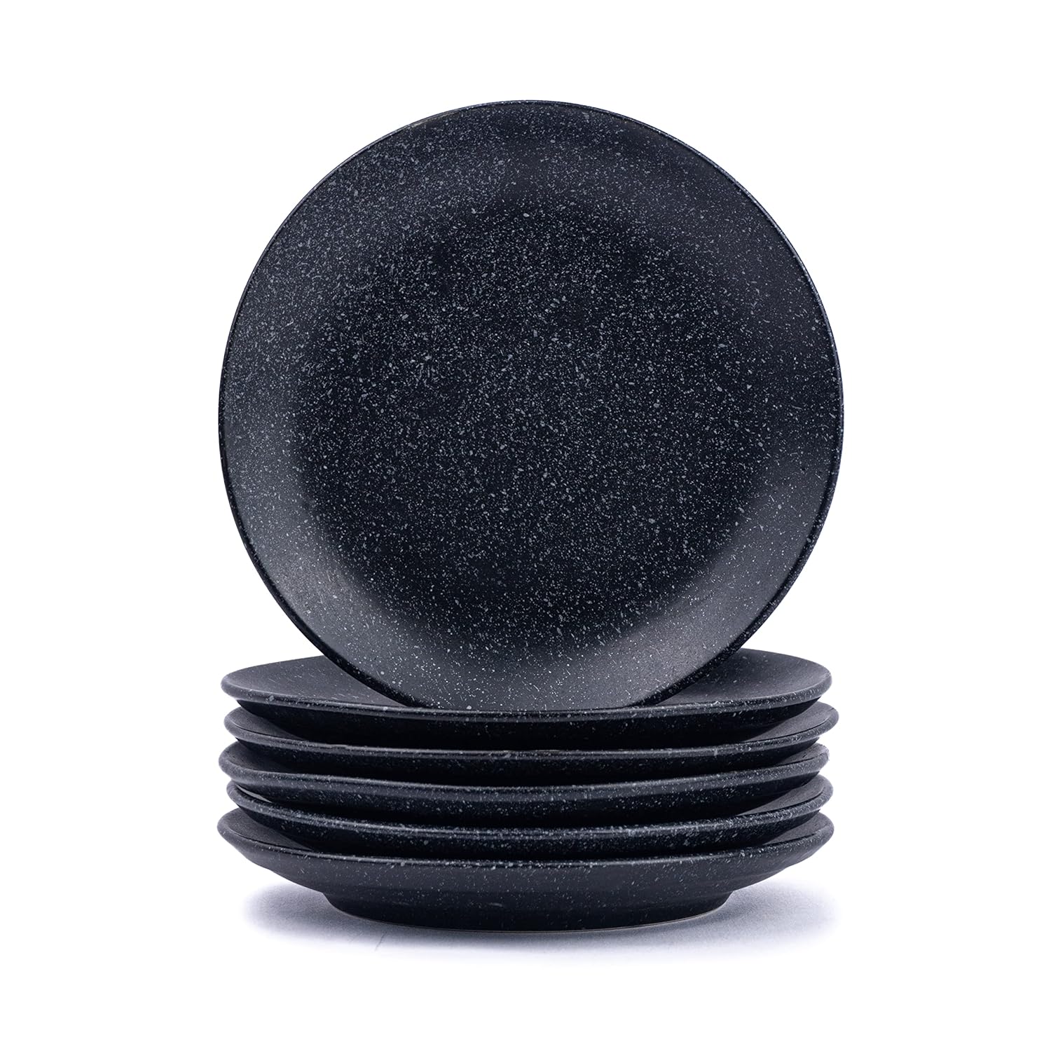 Quarter Plates Set Of 6, Black Speckle | Premium Stoneware | Snacks Plates Set | Dessert Plates | Small Plates With Matte Finish | Microwave Safe & Chip Resistant