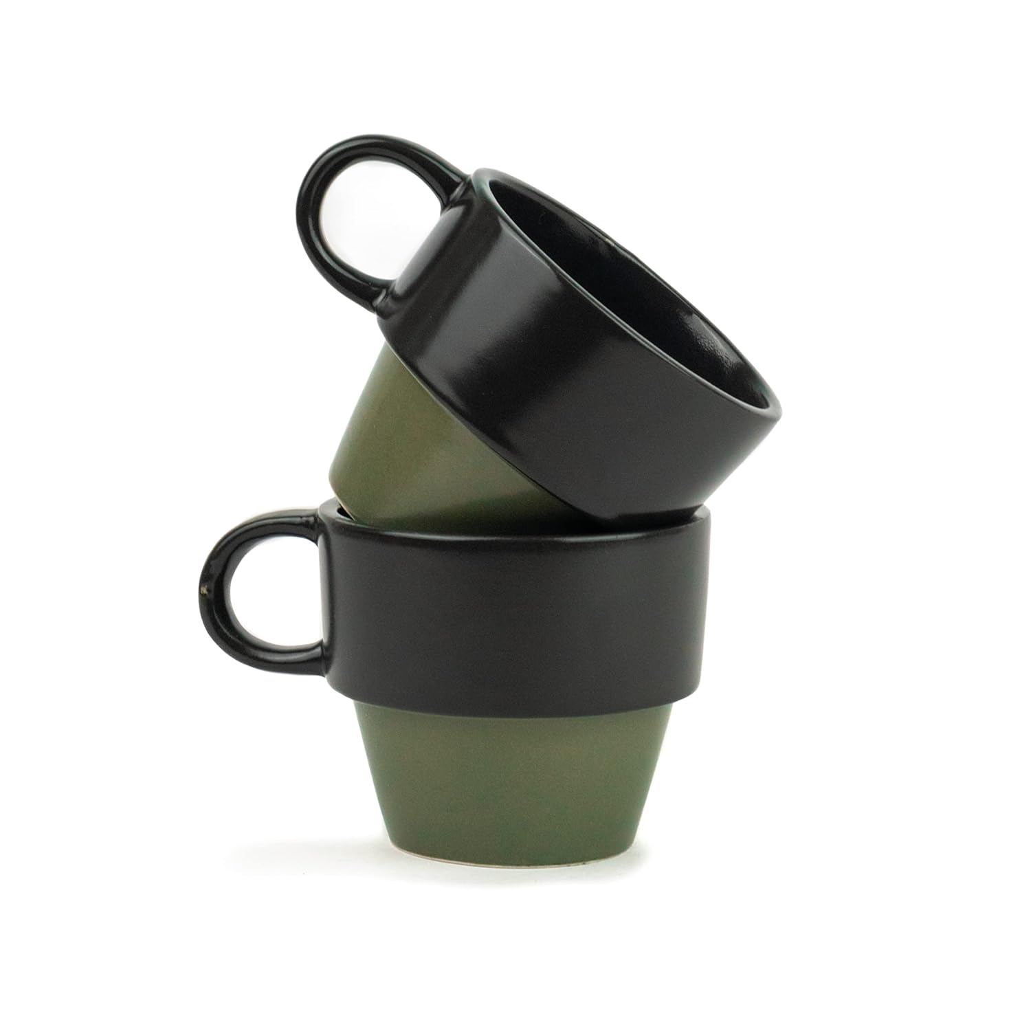 Ceramic Stackable Tea Cup Set Of 6 - Black Olive, 200ml Each | Cup Set Of 6 For Tea | Matte Finish Tea Cup Set | Premium Stoneware Ceramic Cup