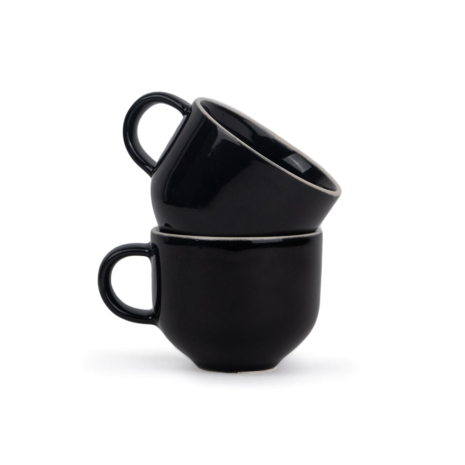 Ceramic Tea Cups Set Of 6 - Black Rim, 200ml Each | Tea Cup Set Of 6 | Premium Stoneware Tea Set With Glossy Finish | Ceramic Tea Cup | Small Cups For Tea | Microwave Safe & Dishwasher Safe