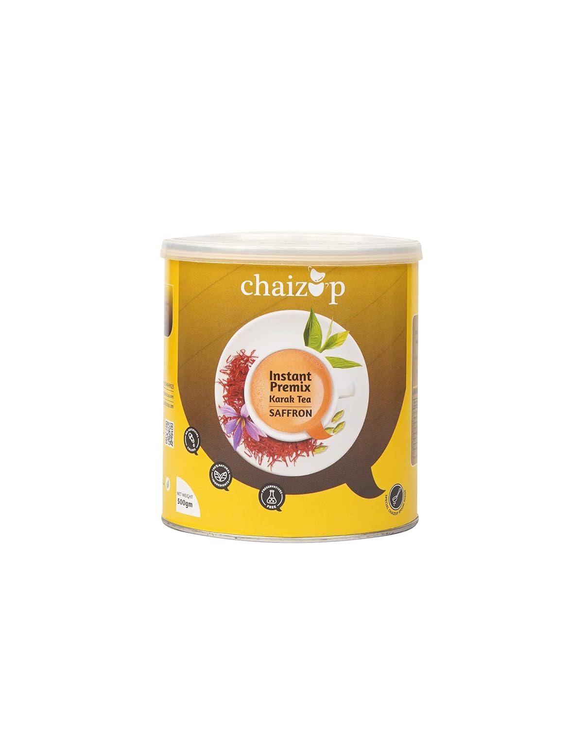 Chaizup Premium 1 Min Instant Saffron Tea Premix - 500gm Can, 17.6 Ounce | Instant Kesar Chai Powder - Just Add Hot Water | Low Caffeine