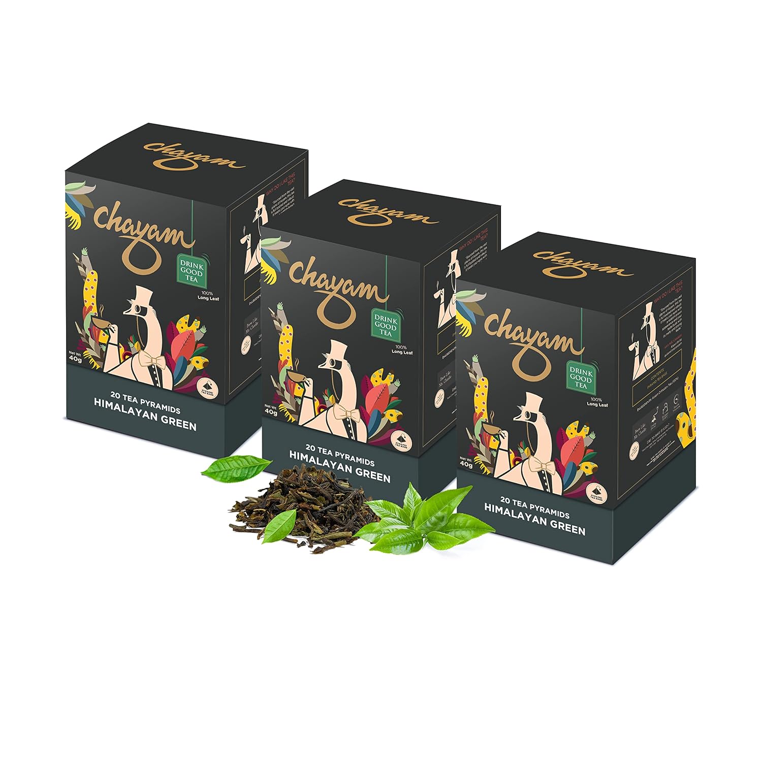 Chayam Himalayan Green Tea - Pack Of 3 X 20 Pyramid Tea Bags | Promotes Healthy Glowing Skin, Reduces Weight Loss - 100% Natural & Whole Leaf | Low Caffeine, Antioxidant Rich