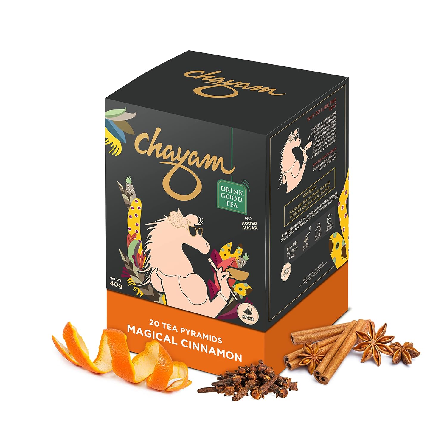 Chayam Magical Cinnamon Green Tea - 20 Pyramid Tea Bags | 100% Natural Real & Whole Ingredients - Blended With Orange Peel, Clove, Star Anise | Low Caffeine, Gluten Free, No Added Sugar