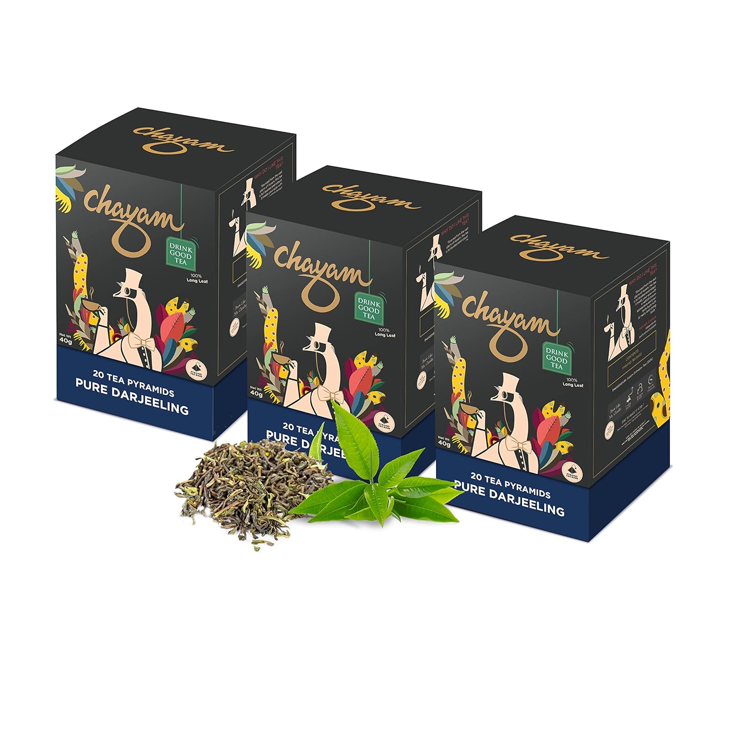 Chayam Pure Darjeeling Tea - Pack Of 3 X 20 Pyramid Tea Bags | Premium Whole Leaf Black Tea - Make Iced Or Hot Tea | Low Caffeine, Gluten Free