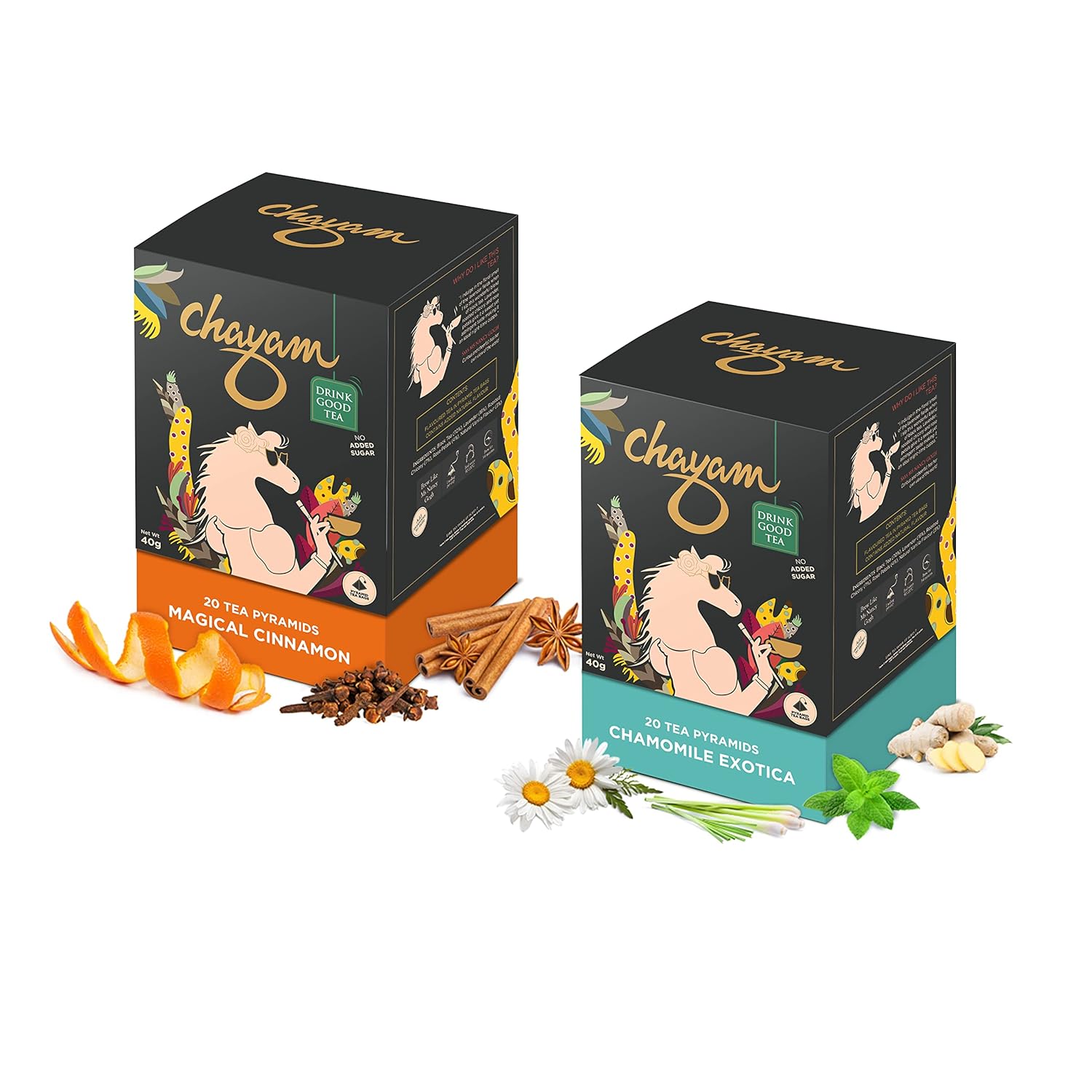 Chayam Sleep & Immunity Combo Pack Of 2 X 20 Tea Bags - Magical Cinnamon + Chamomile Exotica Tea | Rich In Antioxidants, Low Caffeine