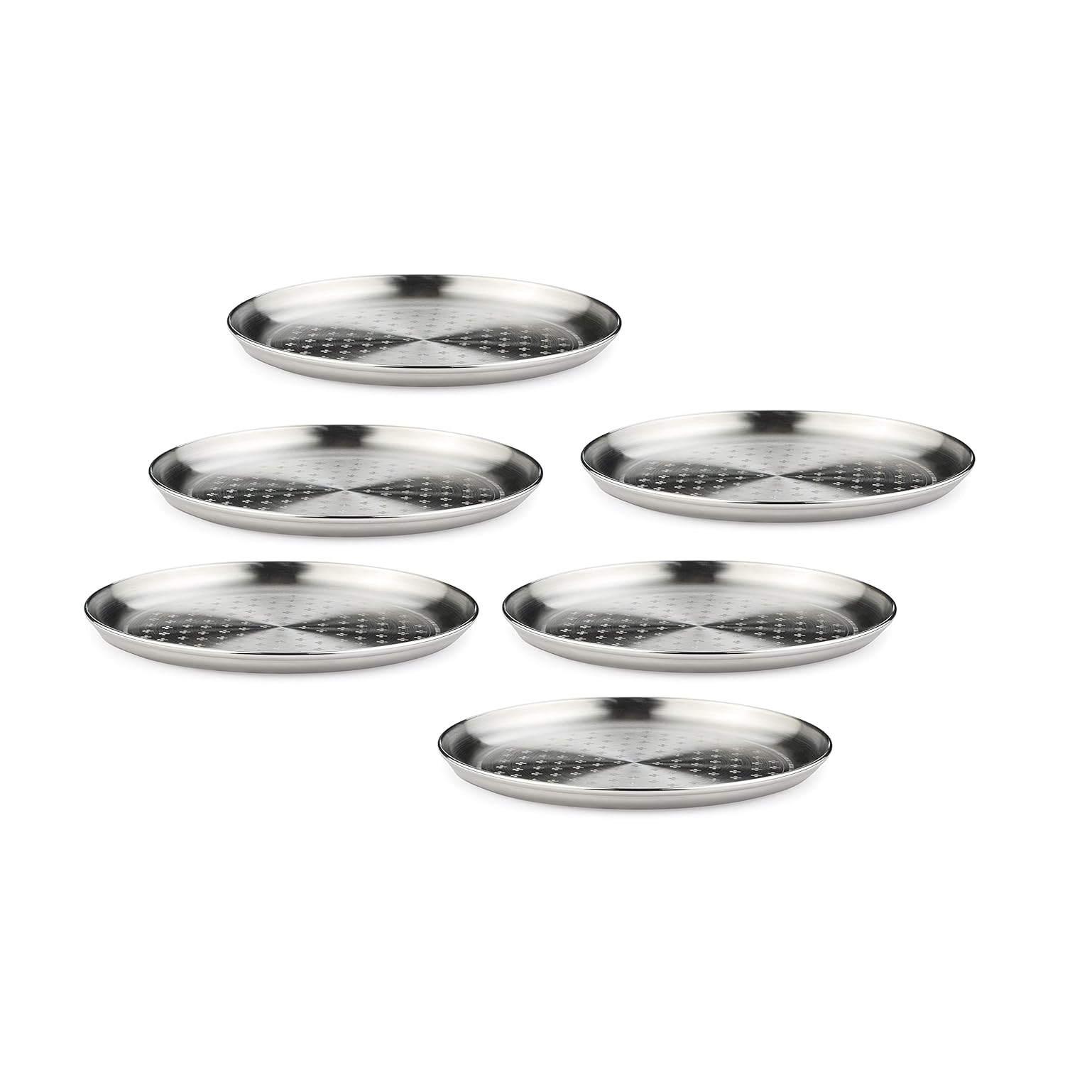Chrome Stainless Steel Quarter Plate Set Of 6 | Salad & Snacks | Flower Dot Patterns | Serve Ware, Dinnerware & Tableware | Zenith Series