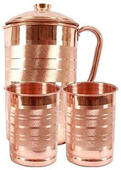 Copper Jug Pitcher 1.5 Liters With 2 Glass Tumbler 300ml Each Glass - Copper Jug Pitcher For Kitchen Serve Ware & Drinkware