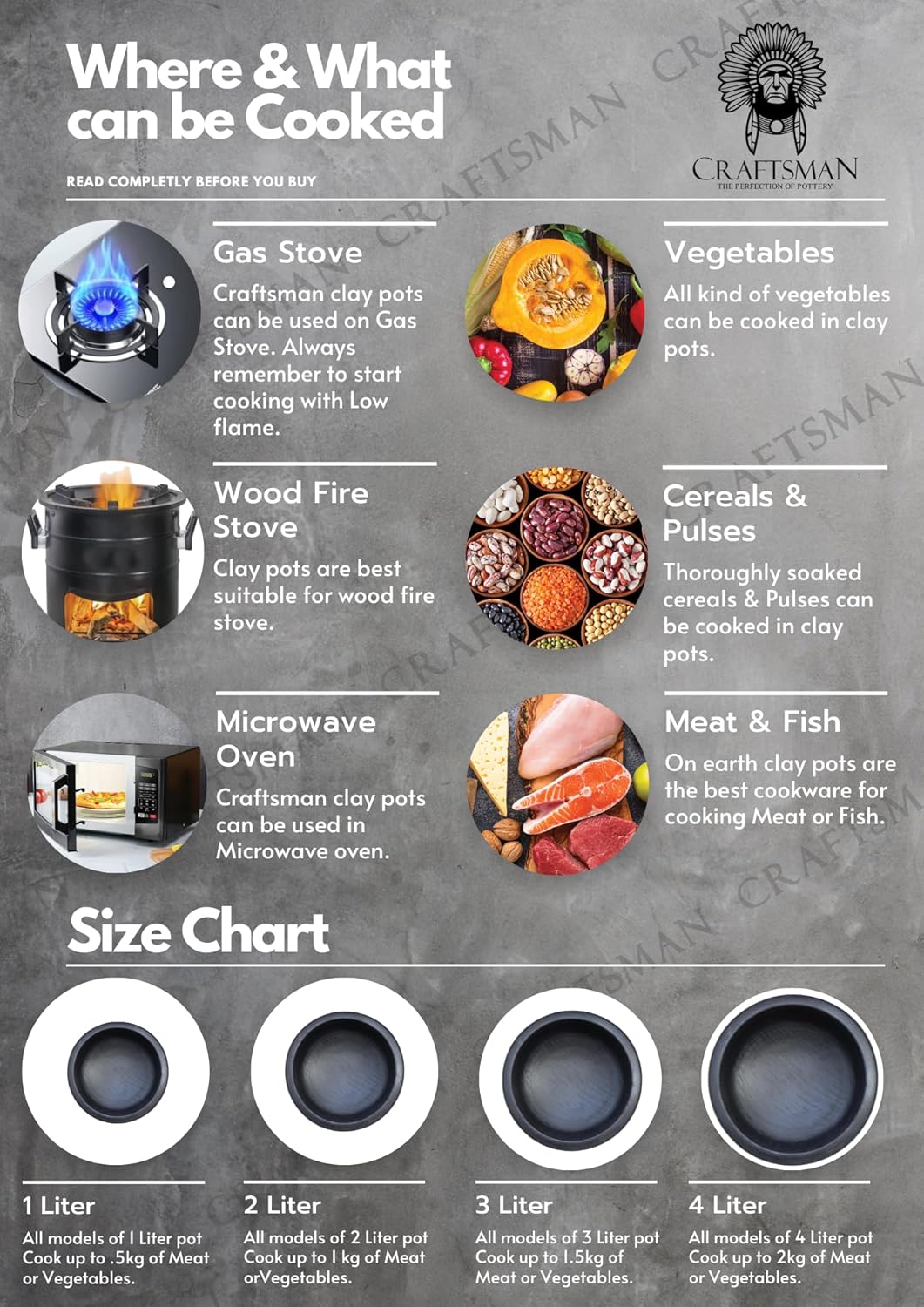 HEALTH ASSURANCE -We assure you there is no chemicals used in any step of making this product. It is made using Naturally excavated Clay. We use edible corn starch for seasoning the pot. | WARNING-Check Images Read all specifications to make sure it fits your purpose and Place the Order. Usage Instructions are Send Along with the Product.