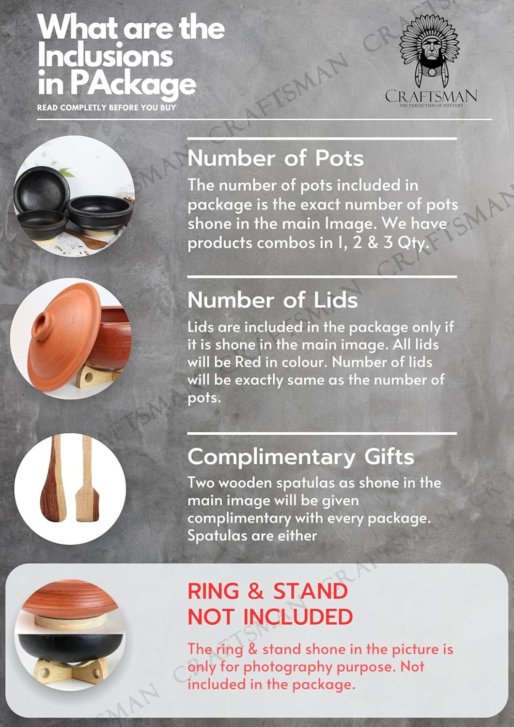 2 SPATULAS COMPLIMENTARY, COASTERS NOT INCLUDED | Size : 1, 2 & 3 LITER | Cooking Capacity : 500gm, 1kg & 1.5 kg MEAT/VEG | Pre-Seasoned, Unglazed, Double fired, Hand Crafted,100% Organic BEST FOR: RICE, BIRYANI, PILAF, CURRIES -VEG,MEAT,FISH, PASTA, CHINESE.