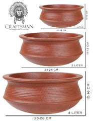 Deep Burned Uncoated Clay Pot Or Mitti Handi Combo With 2 Wooden Spatulas Complimentary Pack Of 3 - Red, 1+2+4 Liters | Pre-seasoned Mud Pot - Unglazed, Double Fired, Hand Crafted